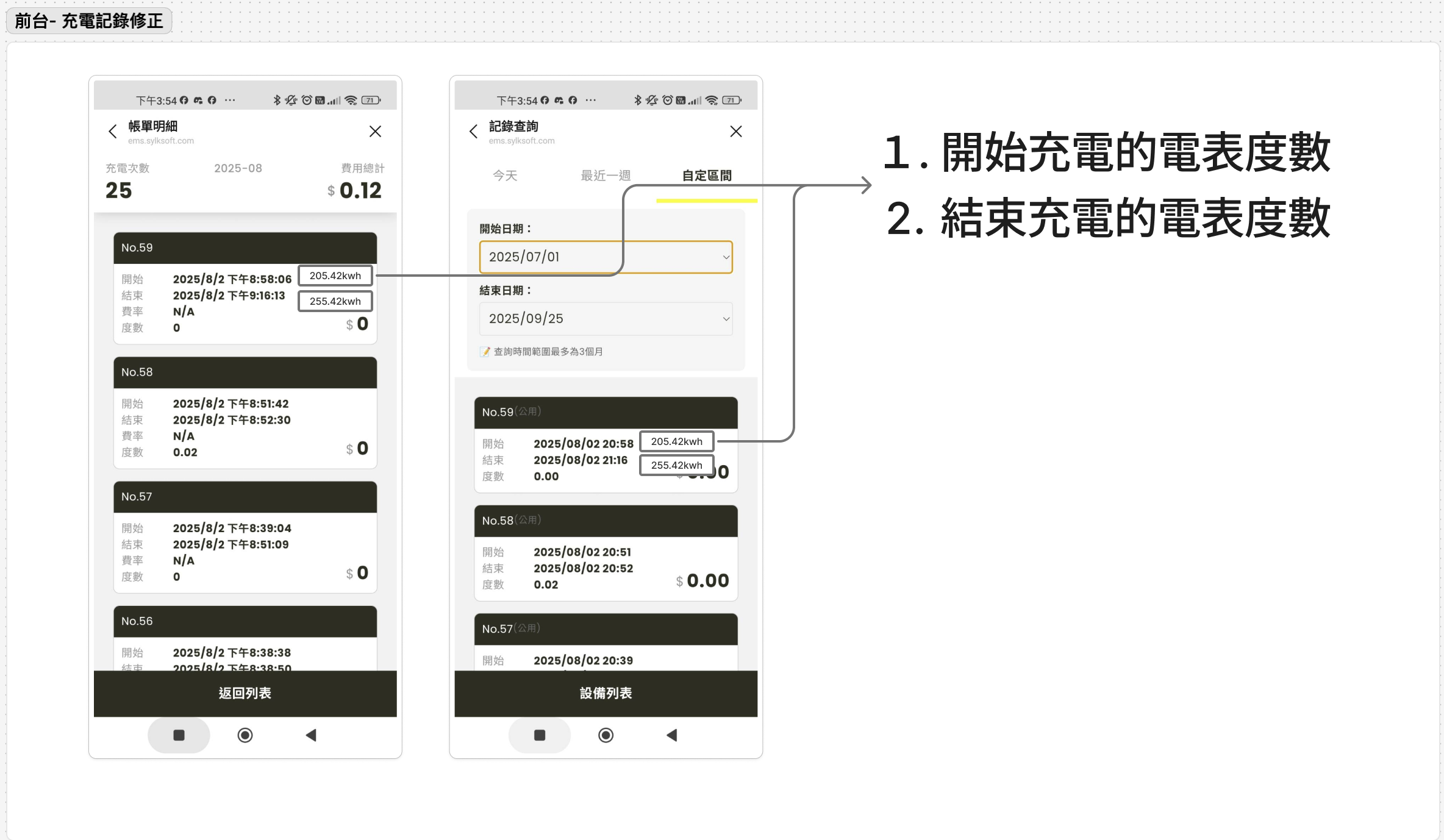 需調整的API, 每筆充電記錄需顯示開始及結束的度數(kwh)